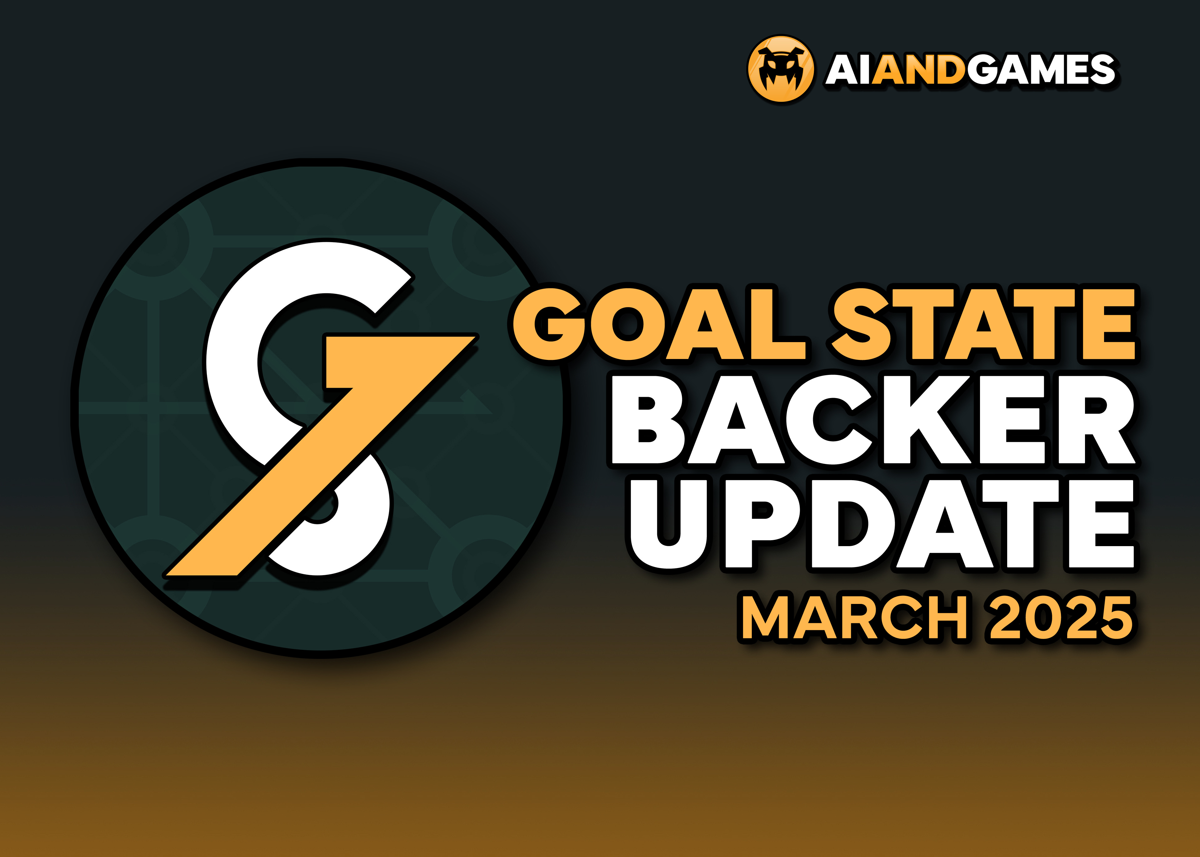 In December of 2024, the first Kickstarter campaign for Goal State was 154% funded. Every month I will be providing updates on the ongoing work to complete the project, and deliver the end reward of complete video lecture and tutorial series on the foundations of AI for game development. While the original 30-day campaign has since closed, you can still sign up for late pledges via the Kickstarter page.