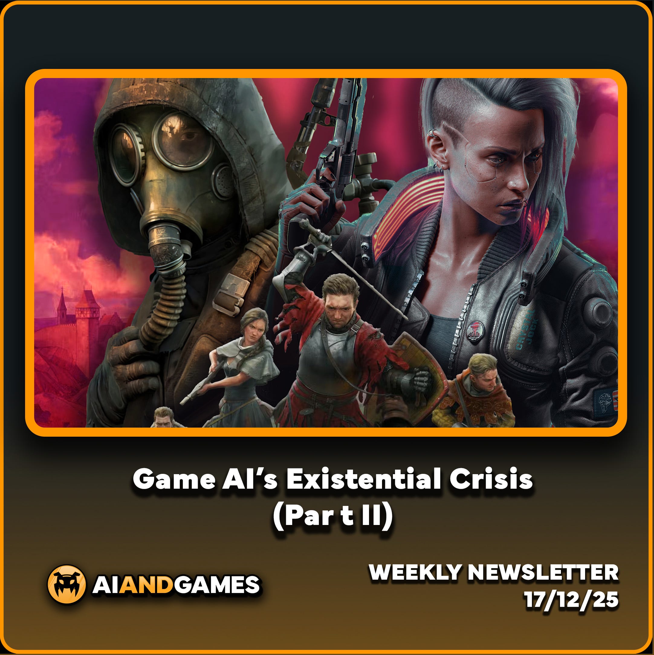 The AI and Games Newsletter brings concise and informative discussion on artificial intelligence for video games each and every week. Plus summarising all of our content released across various channels, like our YouTube videos and in-person events like the AI and Games Conference.