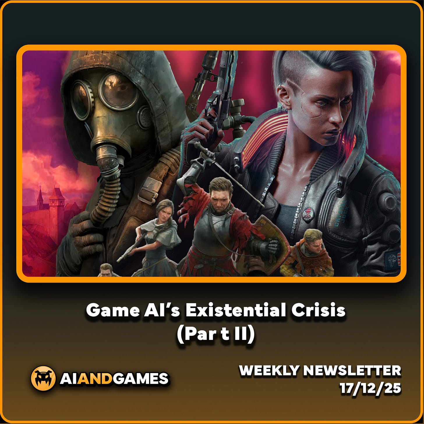 ![Game AI's Existential Crisis [Part I] | 29/10/25](https://substackcdn.com/image/fetch/$s_!ERGx!,w_140,h_140,c_fill,f_auto,q_auto:good,fl_progressive:steep,g_auto/https%3A%2F%2Fsubstack-post-media.s3.amazonaws.com%2Fpublic%2Fimages%2F069186f0-5ef7-4ced-962a-70af65c071e5_3840x2742.jpeg)