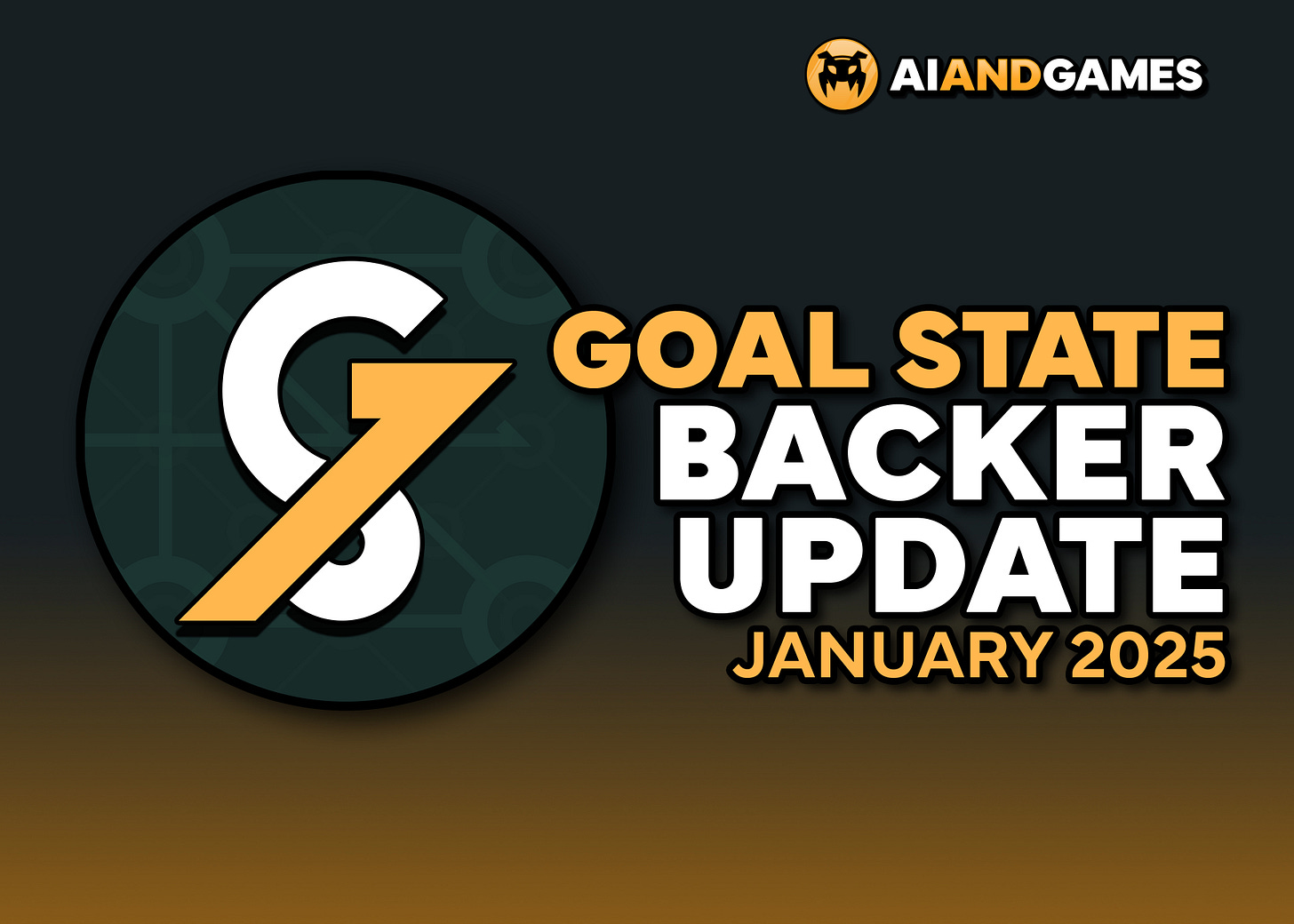 In December of 2024, the first Kickstarter campaign for Goal State was 154% funded. Every month I will be providing updates on the ongoing work to complete the project, and deliver the end reward of complete video lecture and tutorial series on the foundations of AI for game development. While the original 30-day campaign has since closed, you can still sign up for late pledges via the Kickstarter page.