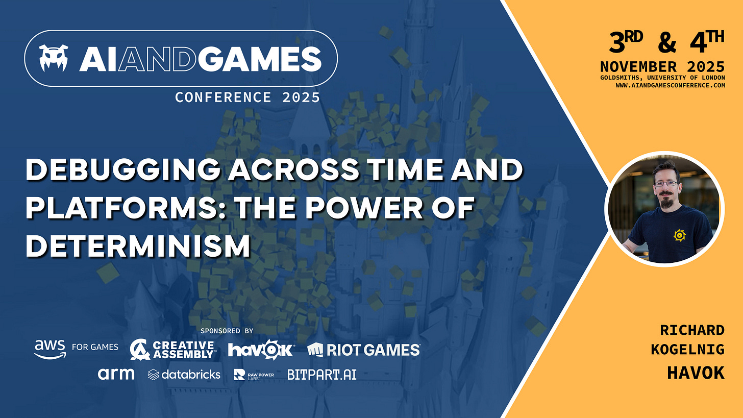 We welcome our friends for Havok who have joined us this year as a partner sponsor of the event. Richard will be digging into an interesting challenge game AI developers face when shipping games on different hardware platforms: ensuring consistency of AI behaviour. Nothing worse when you have a bug that only exists on one console, and not the other. So we’ll be hearing more about Havok’s efforts in creating cross-platform determinism to make it easier to ensure if one platform has a problem, then all of them do.