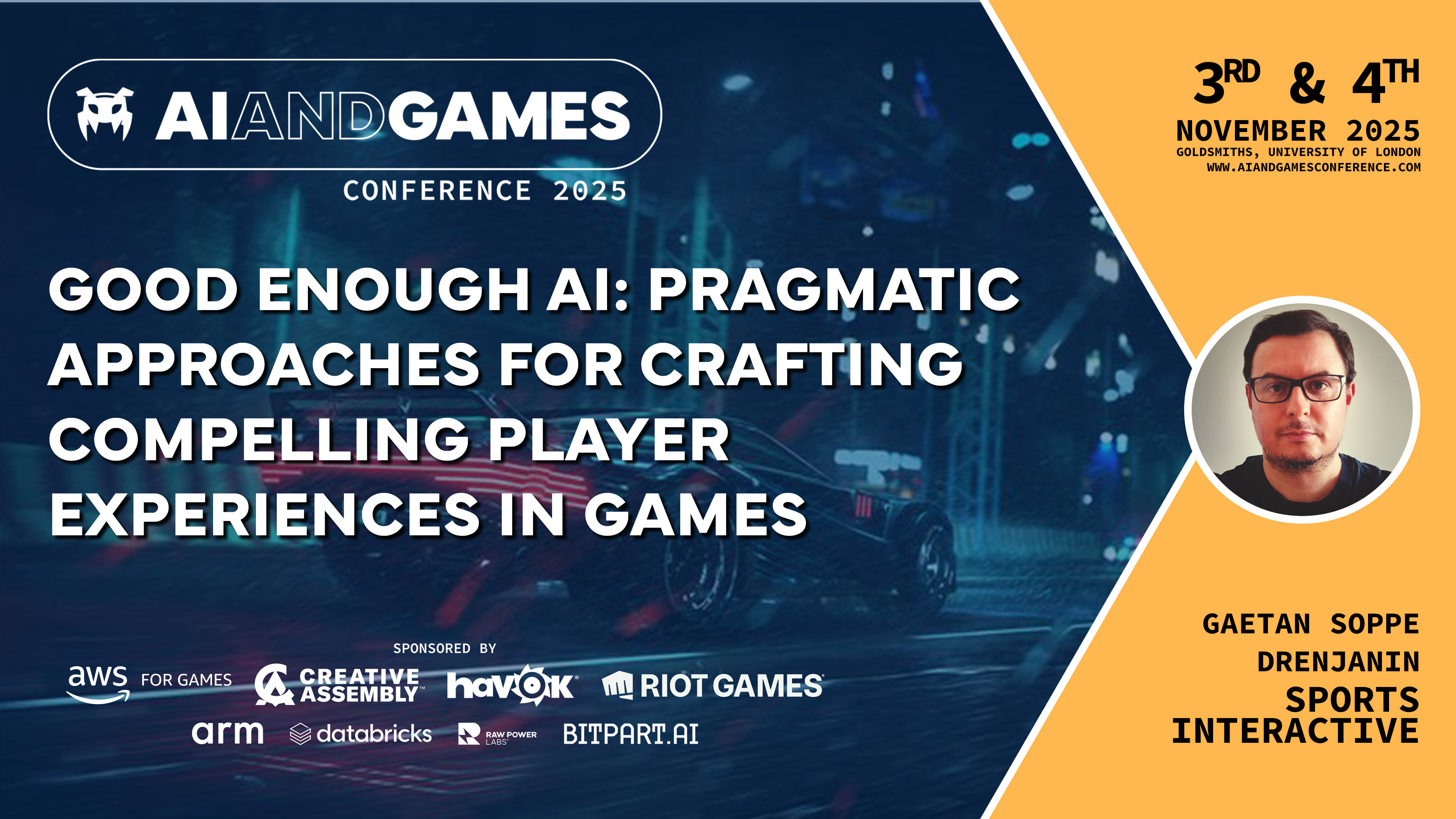 Last but not least for this week, we welcome Gaetan from Sports Interactive, who is going to give an overview on how to build game AI in smart and practical ways. Leaning on his experiences on shipping NPCs and other gameplay systems in large AAA games, he will share that sometimes ‘good enough’, is all you need.