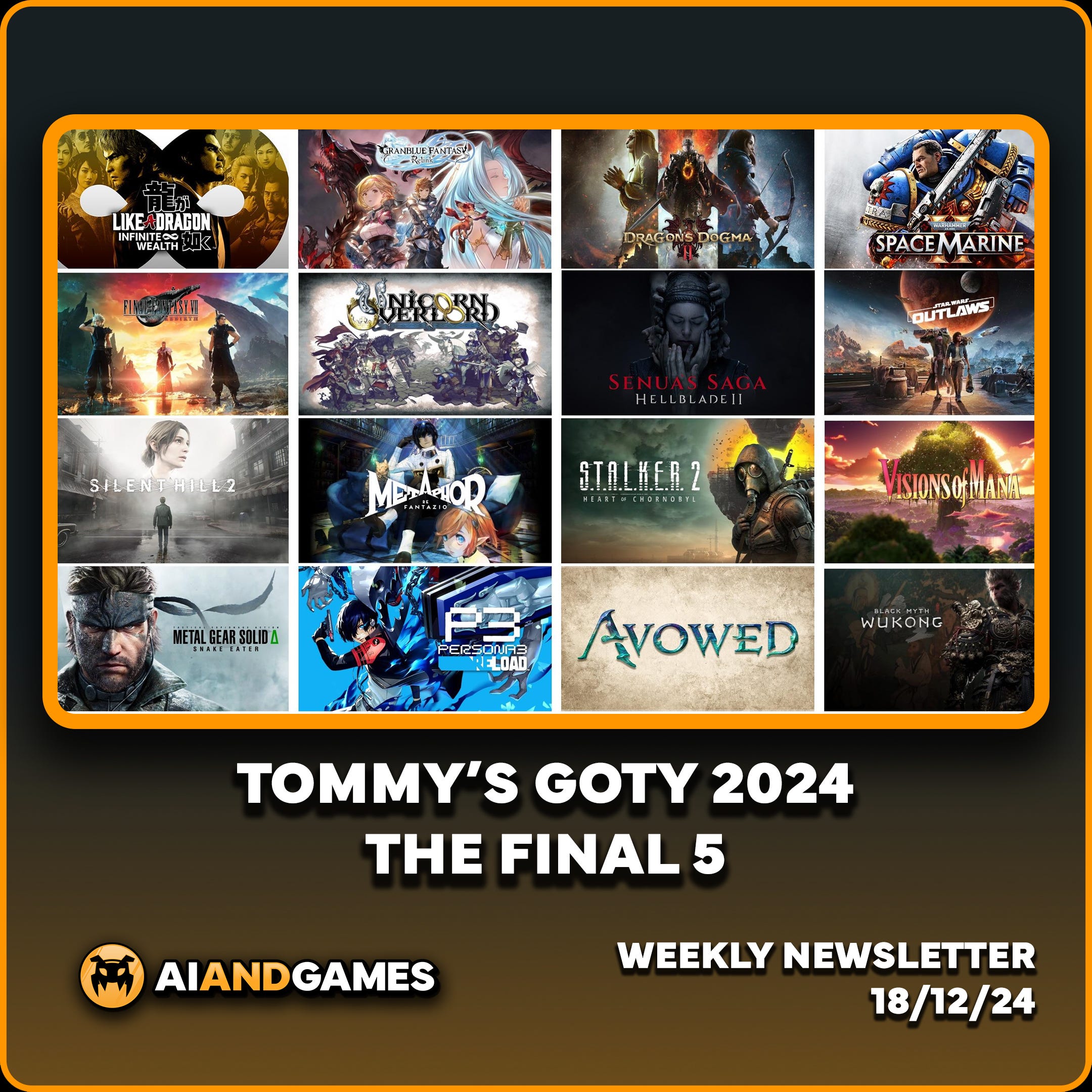 Tommy's GOTY 2024: The Final 5 | AI and Games Newsletter 18/12/24