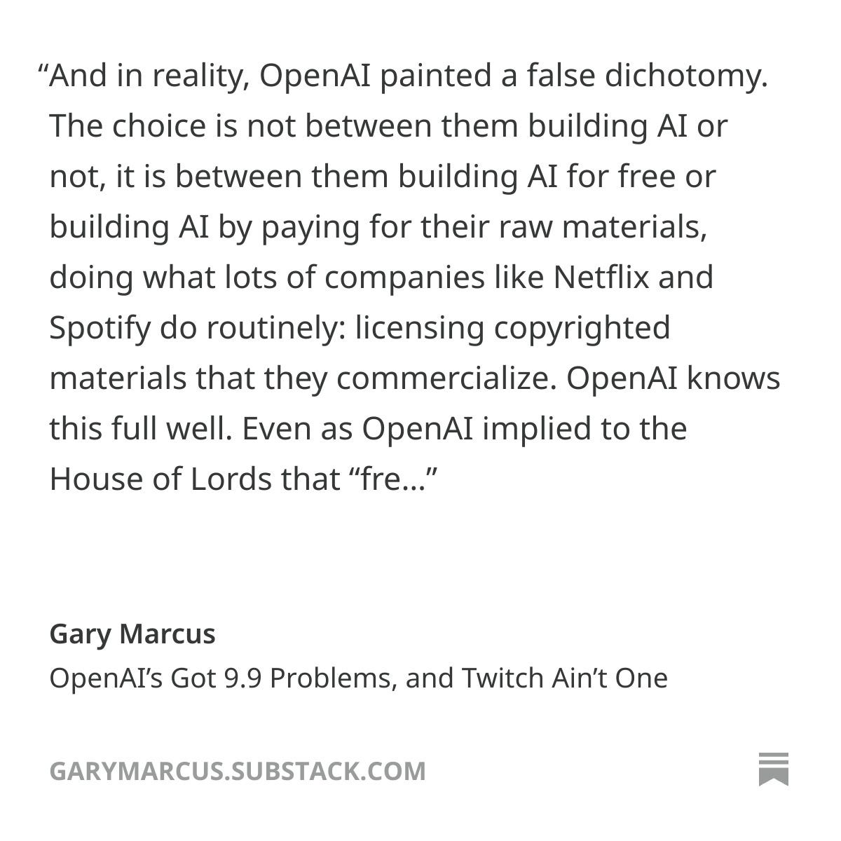 At a time when OpenAI is fighting lawsuits left and right as a result of copyright infringement (the latest coming from Indian news outlets), when a couple weeks back Anthropic had to add protections against song lyrics being exploited, when none of these corporations can actually point to any material profit being made from their AI provisions, now is not the time to placate them, but rather to build ecosystems that support healthy and safe innovation of this technology.